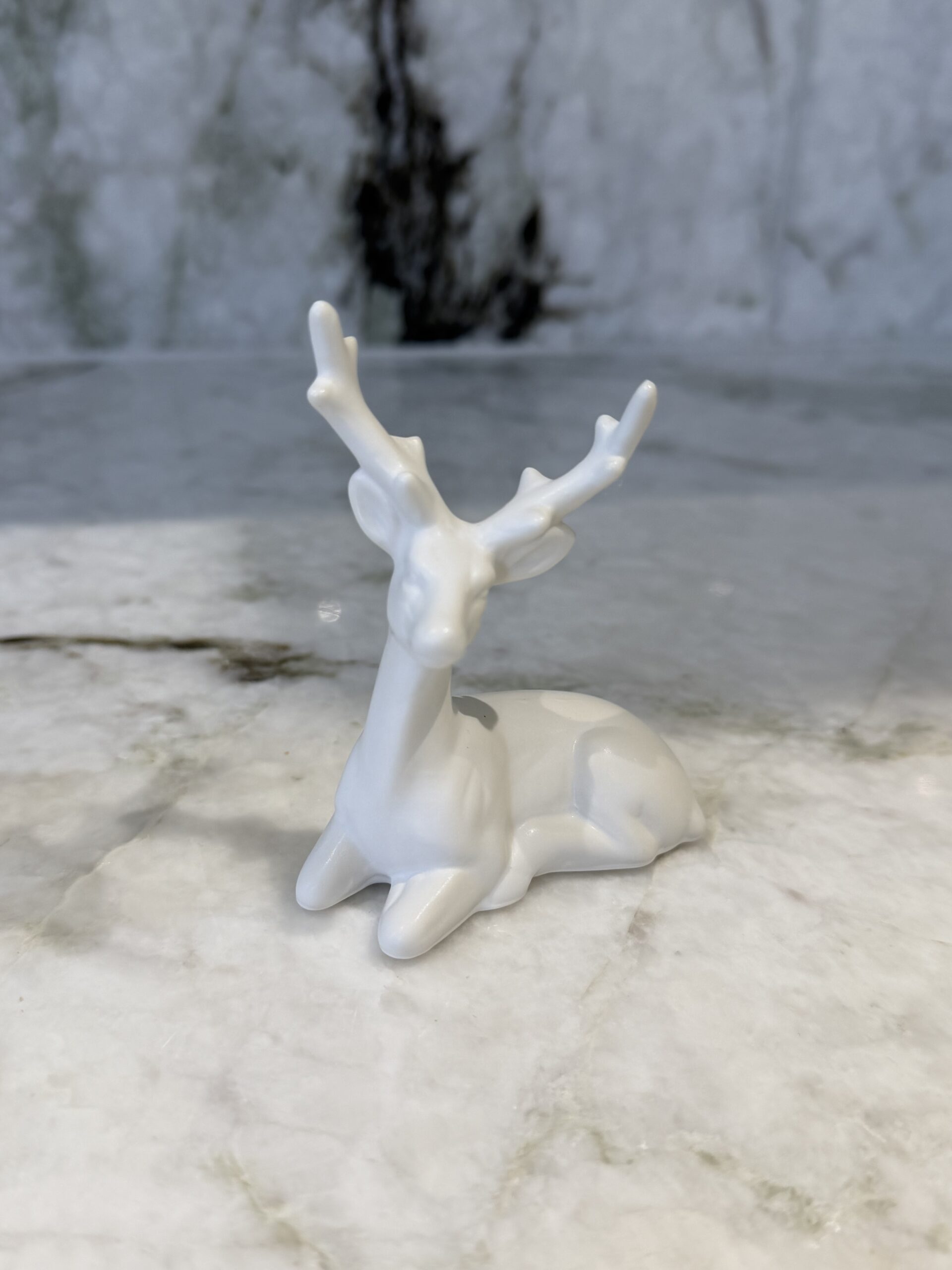 This elegant white ceramic deer adds a touch of charm and sophistication to your home décor. Perfect for mantels, shelves, or side tables, it can also be paired with the standing deer (sold separately) for a coordinated display. A thoughtful gift for animal lovers or a stylish addition to any room.